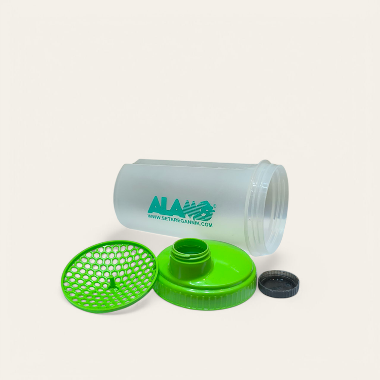 و یک تور شیکر درون آن قرار دارد که برای مخلوط کردن و آماده سازی مکمل های ورزشی از آن استفاده میشود .