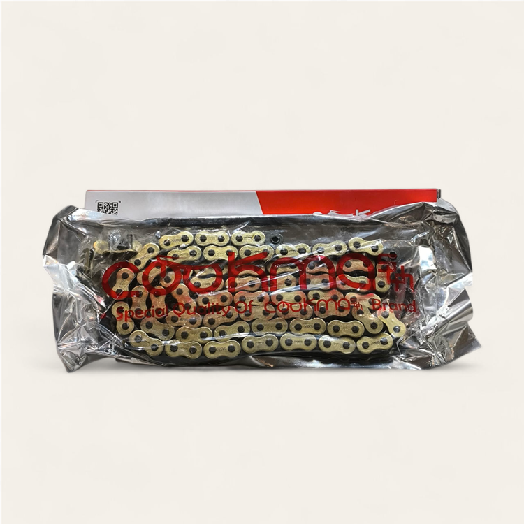 زنجیر اورینگ دار طلایی هندا 520 H 108 دانه کوکما با کیفیت بالا و متریال فولادی و قابل استفاده تا 17000 هزار کیلومتر در صورت سرویس شدن به موقع و گیریس کاری .